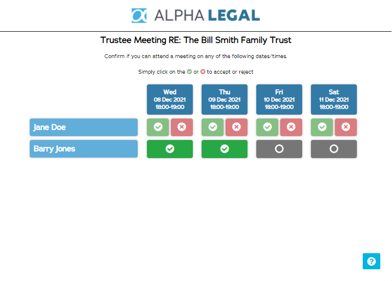 If no agreement is reached on the timeslot, the organiser is emailed to suggest alternative dates. Easy!